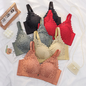 跨境细带美背无钢圈红色本命年内衣小胸聚拢性感前扣三...