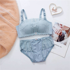 欧美外贸单上薄下厚杯镂空性感舒适文胸套装现货蕾丝边...