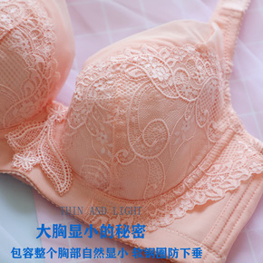 内衣女薄款大胸显小胸全罩杯调整型收副乳防下垂无钢圈...