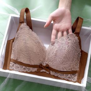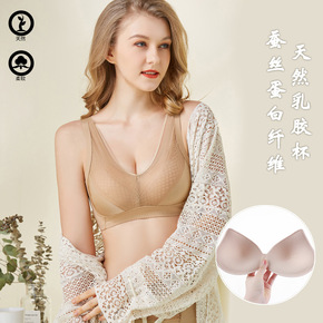 真丝文胸法式三角杯性感蕾丝提花内衣大胸显小无钢圈轻...