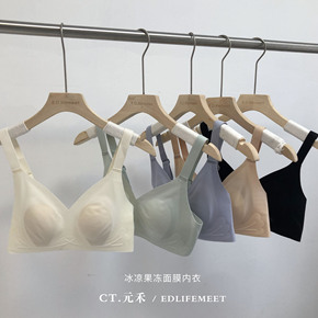 夏季新款光面裸感无痕撞色内衣超薄杯一片式小胸聚拢美...