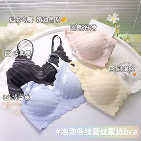 泡泡棉内衣女聚拢小胸罩无钢圈乳胶大胸显小文胸美背心...