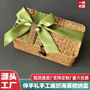 现货海草编织收纳盒长方形带盖收纳筐包装伴手礼藤编礼...
