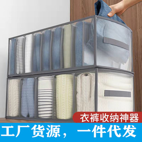 衣服裤子收纳神器抽屉分格盒衣物布艺收纳箱衣柜网纱牛...