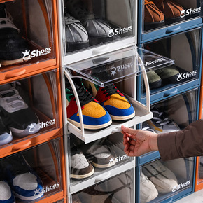 透明鞋盒加厚抽屉式防尘收纳盒组合鞋柜金属包边鞋盒子...