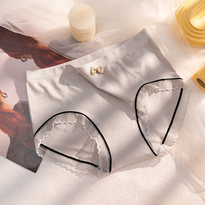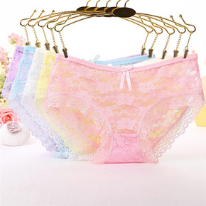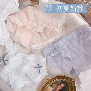 无痕中腰性感蕾丝内裤女士蝴蝶结透明网纱纯棉抗菌裆少...