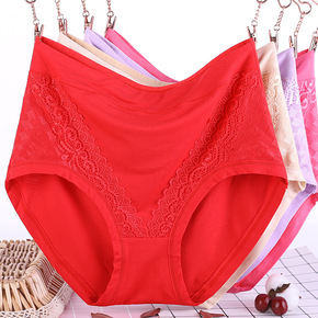 6635莫代尔高腰大码内裤女透气蕾丝花边新款夏季宽...