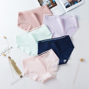 女士全棉内裤批发 2条装一片式中低腰性感裤头纯棉品...