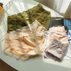【三条装】轻氧蕾丝内裤女桑蚕丝底档女士性感透气提臀...