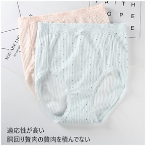 外贸大码高腰内裤女士性感无痕收腹提臀蕾丝边纯色棉舒...