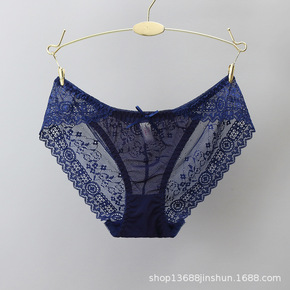 新品奢华性感蕾丝内裤女透明诱惑低腰棉档三角裤 镂空...