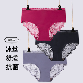新款冰丝无痕蕾丝内裤女中腰透气性感镂空纯棉抗菌裆女...