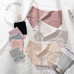 新款中腰莫代尔无痕内裤女士收腹纯棉裆三角裤少女塑形...