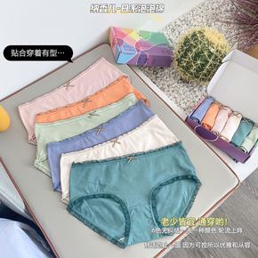 日系小清新棉质女士内裤女学生甜美中低腰大码无痕简约...