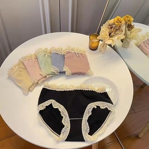 95棉女士内裤中腰透气内裤蕾丝花边无痕三角裤厂家1...