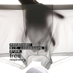 男士内裤男冰丝网孔透气四角裤头男生透明性感平角短裤...