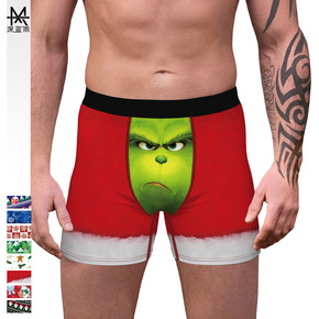 厂家直销圣诞格林奇数码印花内裤性感松紧腰男士透气舒...