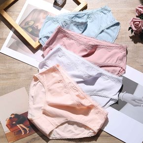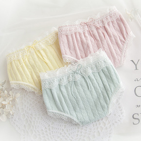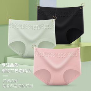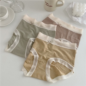 新款外贸无痕中腰透气棉日系内裤女蕾丝性感花边蝴蝶结...