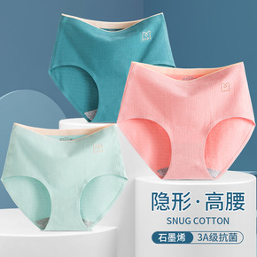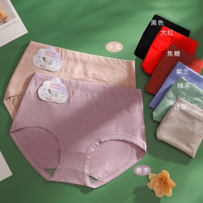 [饭盒6条装]石墨烯棉裆三角裤中腰纯色大码内裤女高...