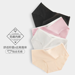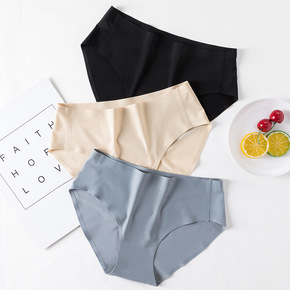 学生纯色中腰冰丝无痕内裤女一片式超薄透气三角裤纯棉...