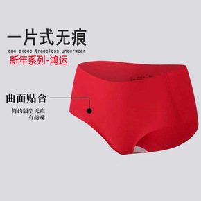 新年鸿运一片式无痕纯棉裆抑菌红内裤本命年高弹中腰裤...