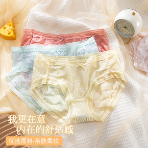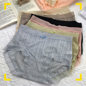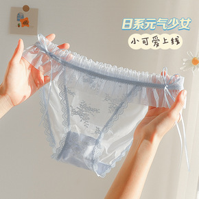 日系纯欲撩人内裤甜美网纱低腰性感蕾丝蝴蝶结透气纯棉...