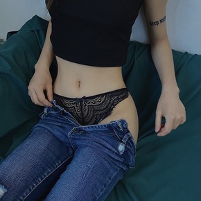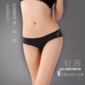 新款日系性感低腰镂空无痕美臀蕾丝超薄网纱三角纯棉裆...