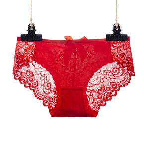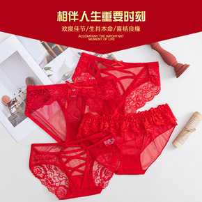 喜气新年本命年红内裤女 透气提臀中低腰性感蕾丝好运...