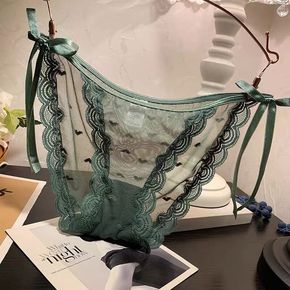 跨境日系薄款网纱性感蝴蝶结蕾丝内裤女低腰三角情趣超...