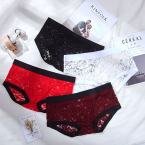 厂家直销男士内裤平角裤 低腰性感透明蕾丝内裤男式...