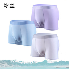 厂家直销 跨境 新款 性感冰丝平角内裤 男士运动内...