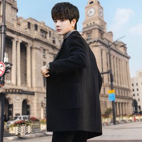 2021冬季新款男士毛呢大衣韩版休闲中长款外套修身...