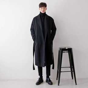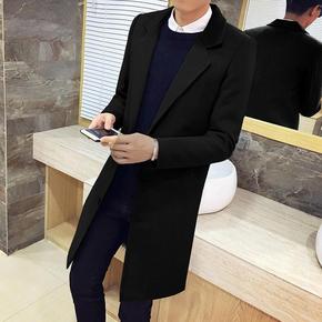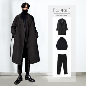 包邮秋冬毛呢大衣男中长款宽松潮牌港风呢子西装外套加...