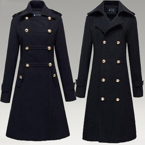 秋冬季超长款过膝毛尼子风衣男女韩版情侣装军大衣加厚...