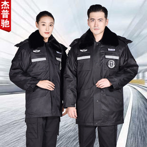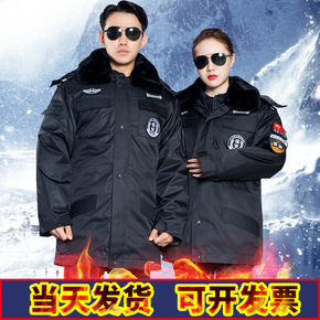 保安棉服冬季加厚短款军大衣男士多功能防寒服执勤工作...