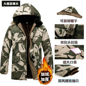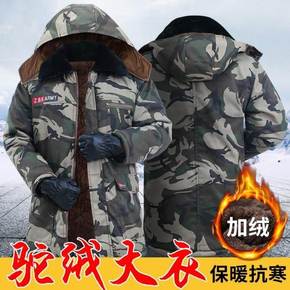 迷彩大衣男冬季加厚防寒短款中长工作劳保棉服军棉大衣...
