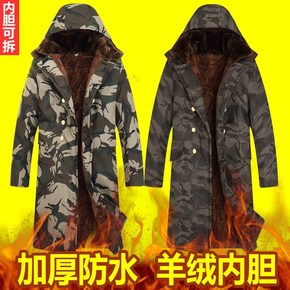 军大衣男冬季加厚加绒长款迷彩劳保棉袄黄保安冷库防寒...