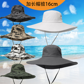 钓鱼帽子男士夏天户外防晒帽透气登山迷彩渔夫帽大沿遮...