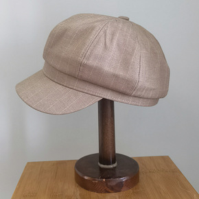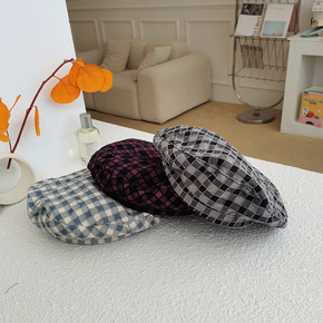 日系甜美文艺蓝白格子平顶贝雷帽子女夏季薄款透气画家...