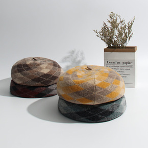 货源类别:现货 货号:29小千鸟格贝雷帽 产品类别:贝雷帽 适用性别:中性/男女均可 材质:...