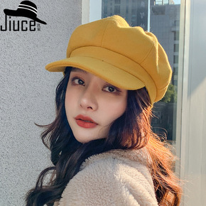 帽子工厂直销纯色毛呢八角帽子女秋冬天加厚保暖贝雷帽...