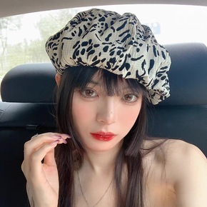 复古豹纹贝雷帽夏季女薄款大版显白显脸小画家帽网红凹...