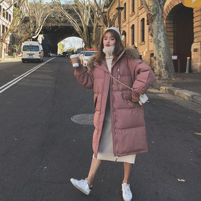 包邮冬季姐妹装学生羽绒棉服女新款韩版中长款加厚毛领...