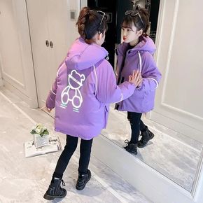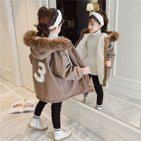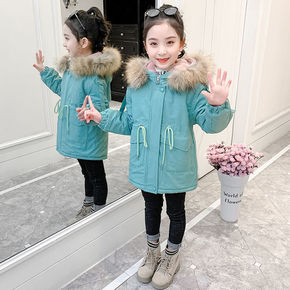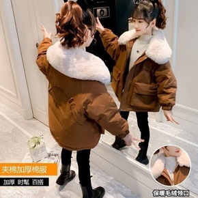 女童派克服2022冬季洋气韩版夹棉加厚棉袄中长款儿...