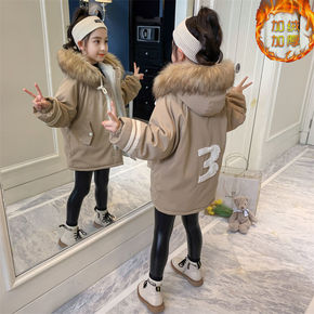 女童加绒外套2022新款儿童加厚棉袄秋冬洋气网红棉...