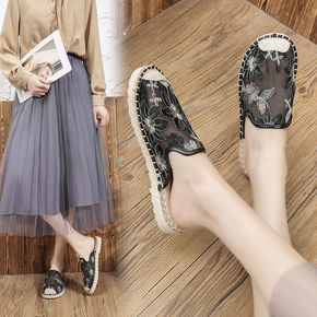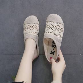 半拖鞋女2020新款镂空蕾丝鞋夏季女平底一脚蹬懒人...