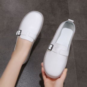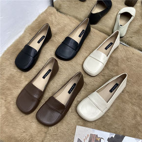 复古豆豆鞋女2022年新款春季软底软皮孕妇滑单鞋一...