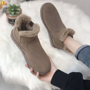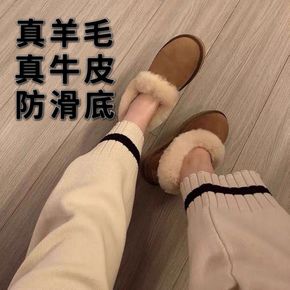 2021年款羊毛一体雪地靴冬天低帮矮筒一脚蹬牛皮加...