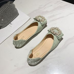 平底单鞋女2022秋季新款韩版珍珠网红百搭舒适瓢鞋...