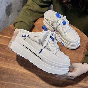 新款厚底飞织增高女鞋松糕底透气休闲鞋女浅口单鞋一脚...